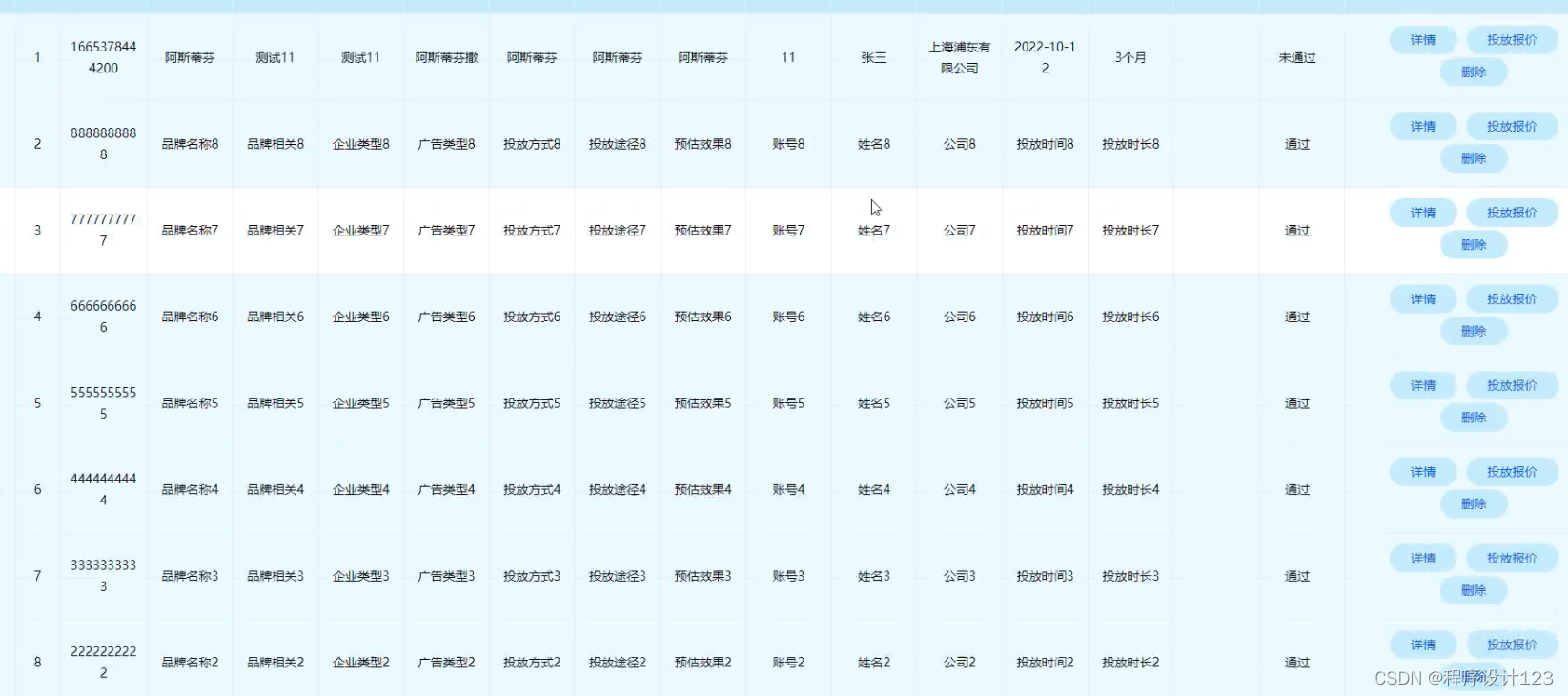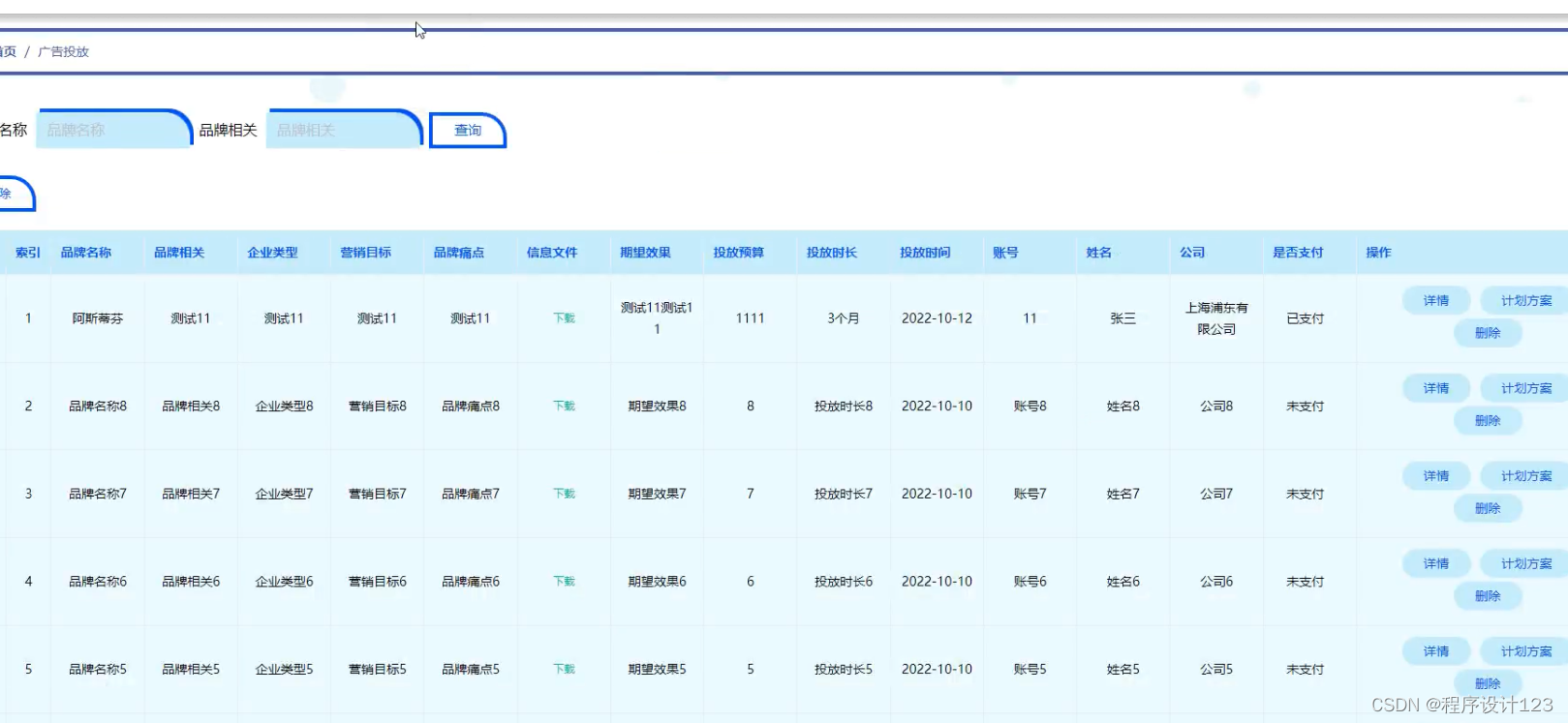 | 5 | 在广告投放管理界面中点击删除按钮实现删除广告投放信息 | 无 | 若广告投放资料录与其他数据库没有外部关键字关联,可以移除 | 若广告投放资料录与其他数据库没有外部关键字关联,可以移除 |