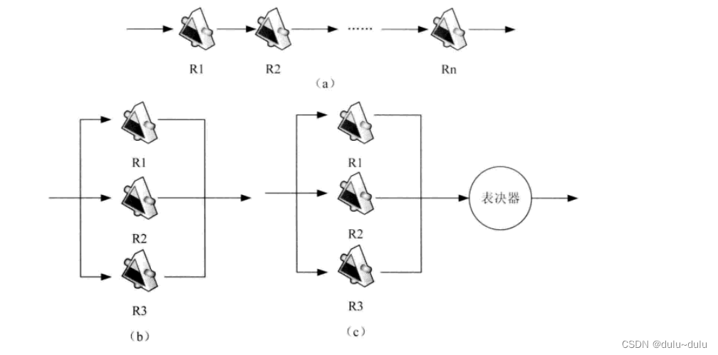 (3)模冗余系统:由n个系统和一个表决器组成,通常表决器是视为永远不会坏的,超过n+1