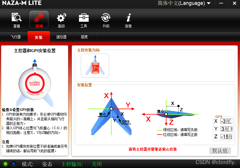 5.飞控安装,位置要居中。GPS的指向要和飞控方向一致。