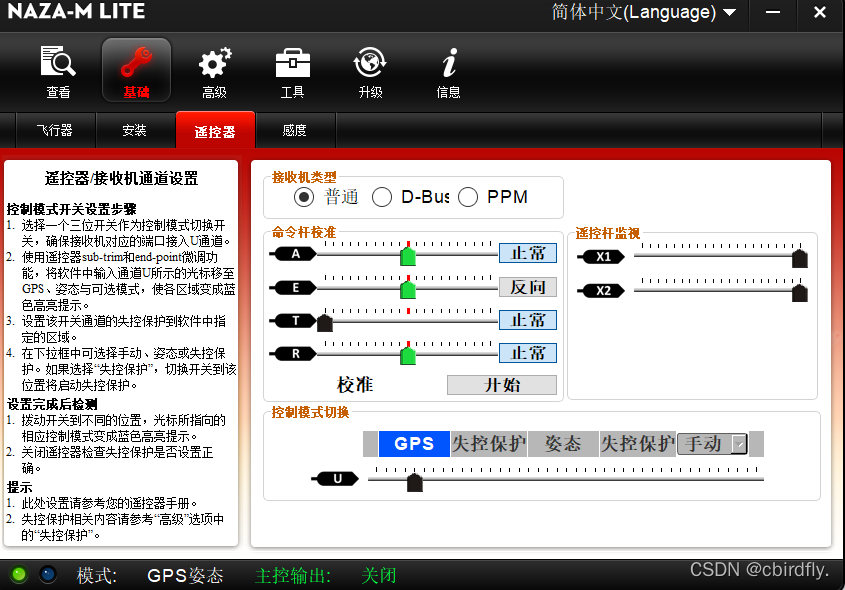 这里主要是遥控器,推荐看一下这个视频:乐迪AT9S配NAZA飞控设置教程_哔哩哔哩_bilibili