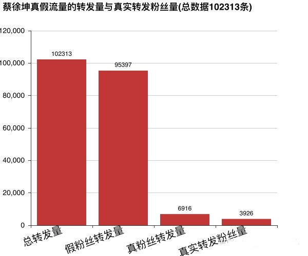 一、扒了扒蔡徐坤100万+微博转发中,假流量占了多少的比例。