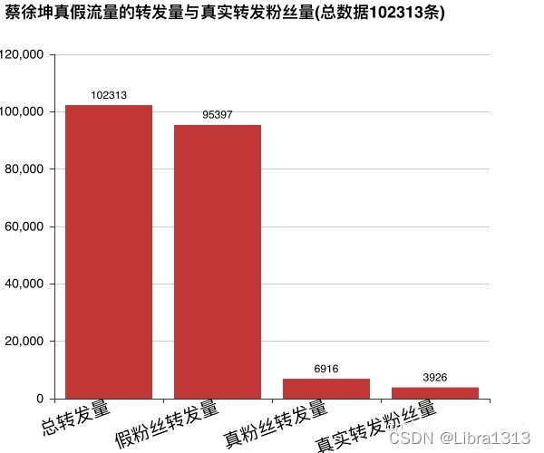 随机抓取蔡徐坤100万+转发的微博《再见,“任性的”千千…》的10万条转发数据,并且分析蔡徐坤真假转发流量的比例以及真假粉丝的用户画像。