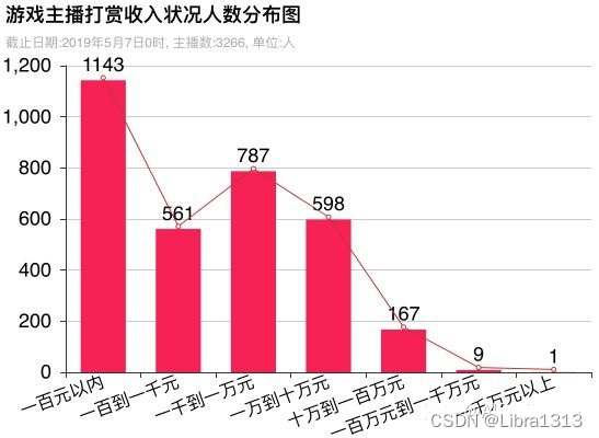 使用多线程爬虫爬取了西瓜直播(今日头条旗下APP)各类型游戏的主播直播数据107.5万条(时间:2019年4月30日0时至5月7日0时7天,平均每隔5分钟获取一次各类型游戏所有主播直播数据),并分析直播平台和游戏主播行业是否真如我们想象般的暴利,以及游戏主播的回报跟付出的努力是否成正比。
