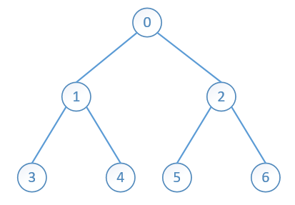 上图中二叉树的层序遍历结果为:0 -> 1 -> 2 -> 3 -> 4 -> 5 -> 6