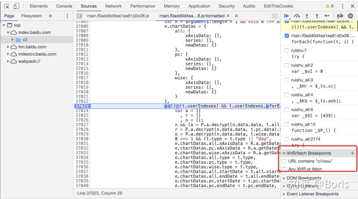 - 切换回原网页,刷新页面,若钩子函数关键词匹配到了,则触发debug