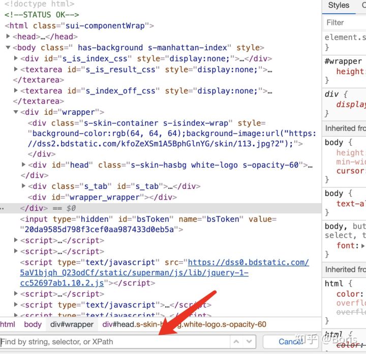 点击代码,然后按ctrl+f 或 command+f 调出搜索框。搜索支持 关键词、css表达式、xpath