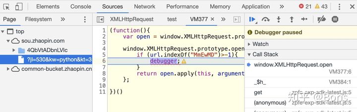 window.XMLHttpRequest.prototype.open = function (method, url, async){if (url.indexOf("MmEwMD")>-1){debugger;}return open.apply(this, arguments);