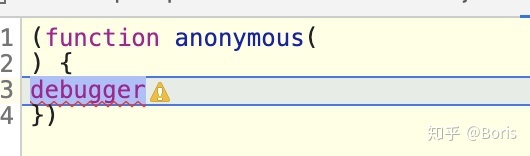 如果你打开chrome的检查工具,发现自动断到了如下的位置,那么这种手段为常用的反调试手段
