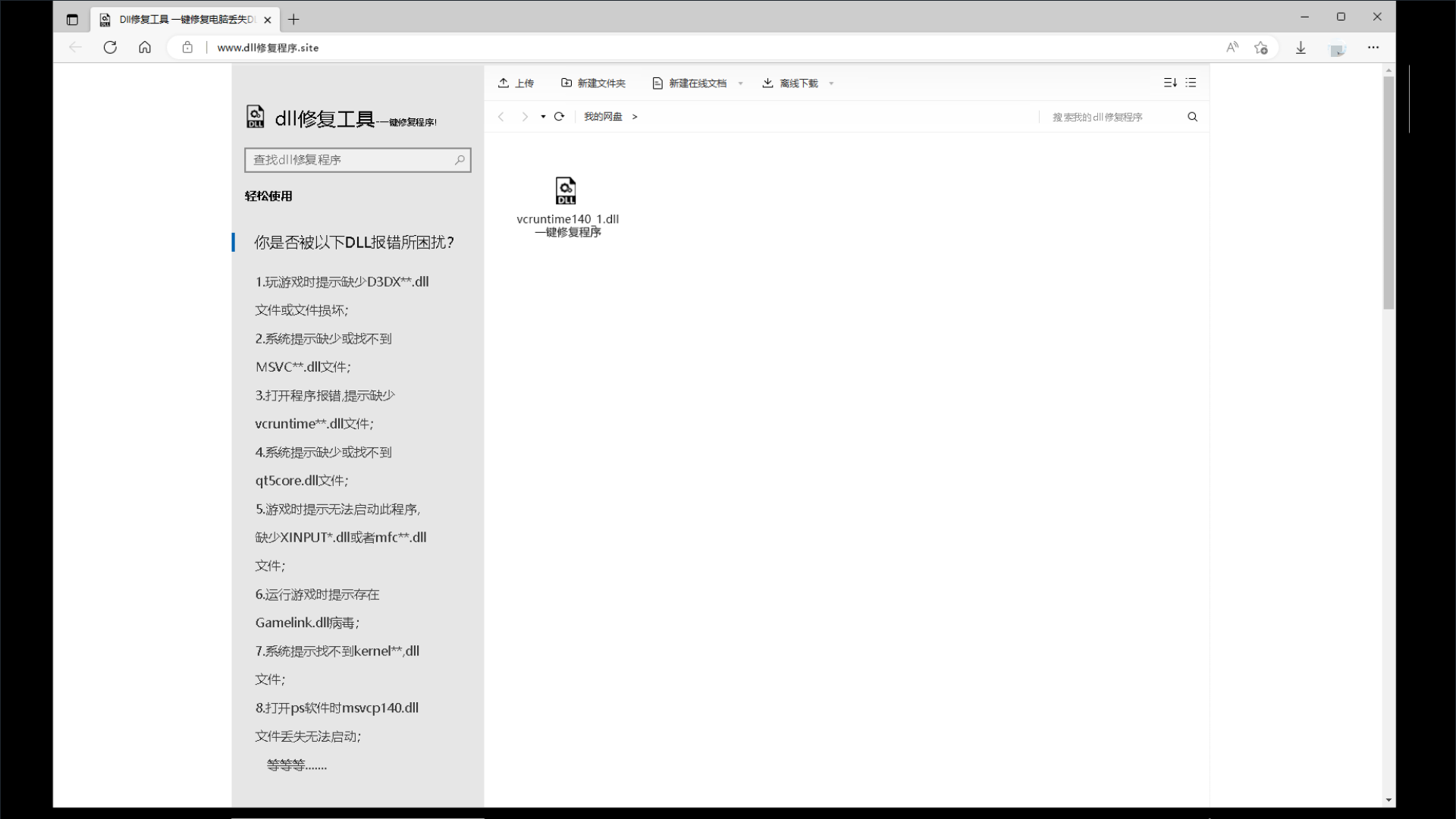 首先是打开电脑浏览器后在顶部输入【dll修复程序.site】按下键盘的回车键打开,点击下载vcruntime140_1.dll系统文件安装包
