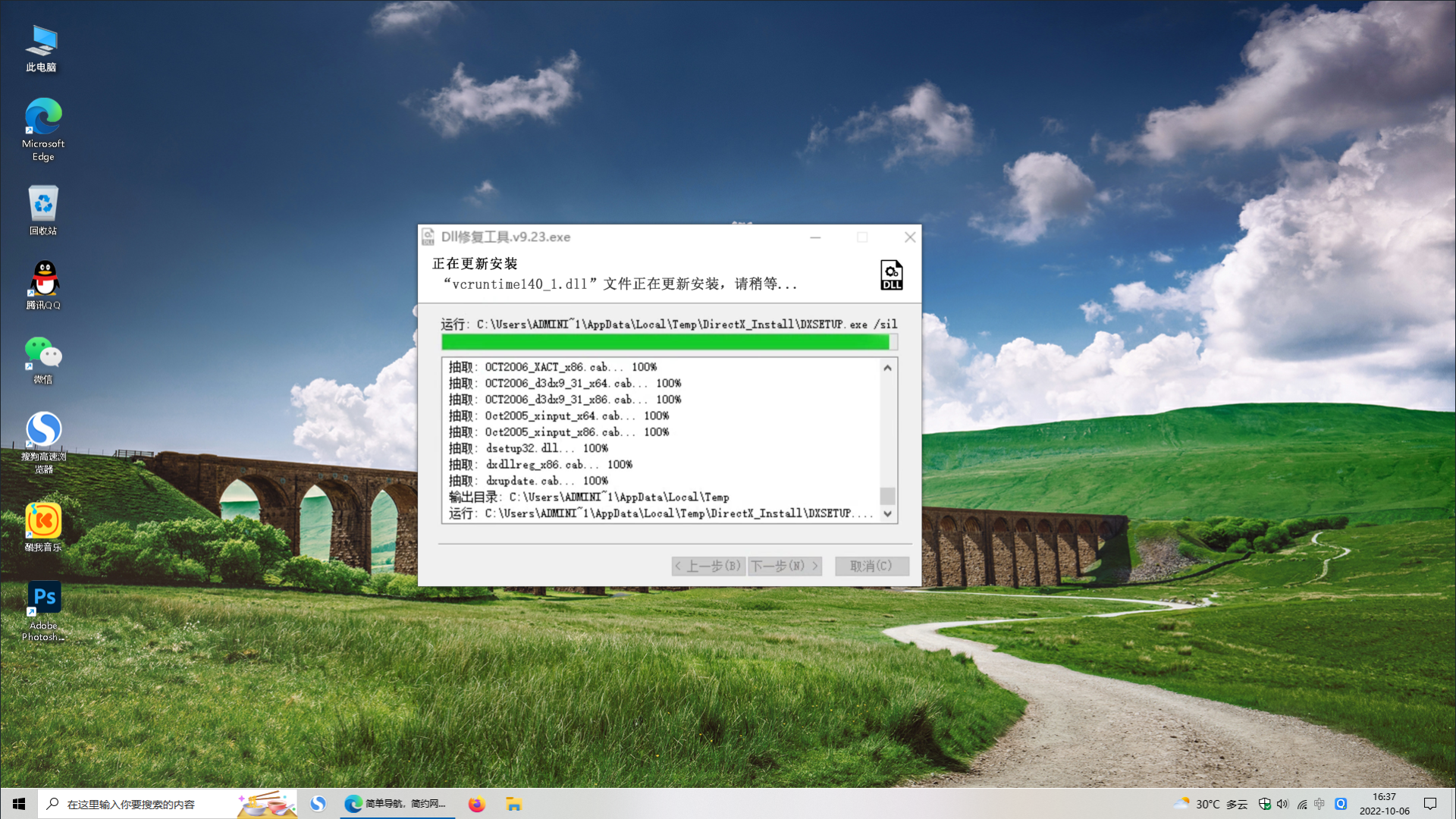 可以看到vcruntime140_1.dll系统文件正在更新安装。也可以点击安装详情查看安装进程。