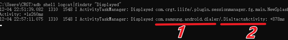 (3)DOS环境输入:adb shell logcat|findstr "Displayed" ,打开待测试的APP;