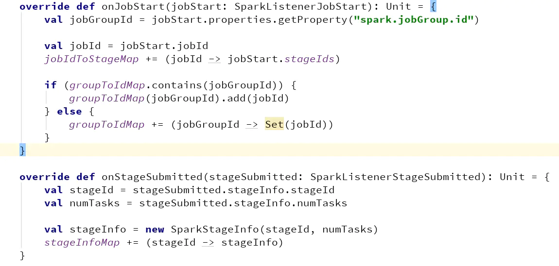 2. 原生的livy查询中日志只有session级别的,也即spark-submit的提交日志,然而该日志对用户来说意义不大,当用户执行一条sql查询时,用户关心的是当前查询的执行进度,为此我们对livy的查询日志这块做了修改,新增了查询statement的日志的接口/sessions/{sessionId}/log/statements/{statementId},在livy-reply的模块中,为了能够反映出当前sql的查询进度,我们通过继承了SparkListener接口来将spark执行状态中的关键信息获取到,并且通过Job0/Stage1(10/20)这样的方式打印出来。