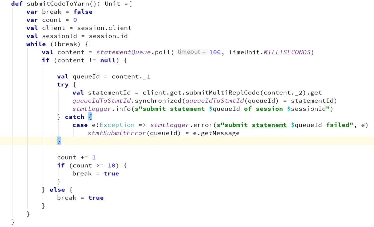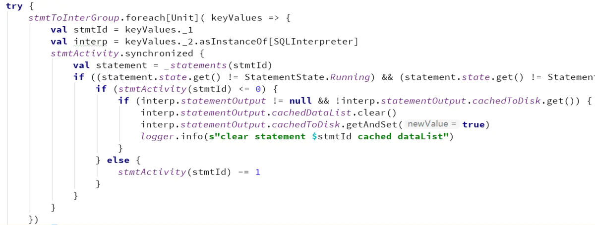1. 原生的livy一次只能执行一条sql,后面提交的sql处于waiting状态,而平台的查询需要支持多条sql的并行查询,看下livy中查询的逻辑,在livy-repl模块的Session类中