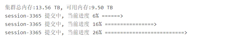 在session启动时,由于sql并未执行,因此没有执行进度日志,但我们为了提高用户体验,在session启动时封装了虚拟的提交日志,如图所示: