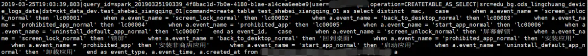 5. 平台需要提供数据审计功能,即需要记录用户每条sql对应的查询类型、输入表、输出表等,方便后续进行查询,这里我们通过对sparksql的logicPlan进行解析,从而得到其输入表、输出表等,具体对logicPlan的解析过程可以参考之前写的博客:https://blog.csdn.net/u012477420/article/details/80147793