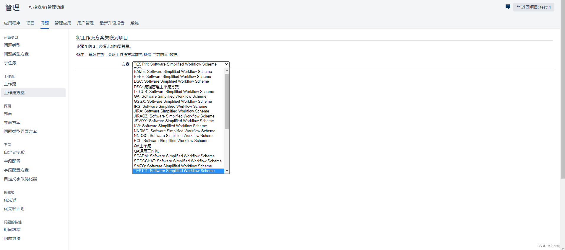 10)现有的工作流很多,我们一般缺陷就选择QA工作流,其它问题类型,我