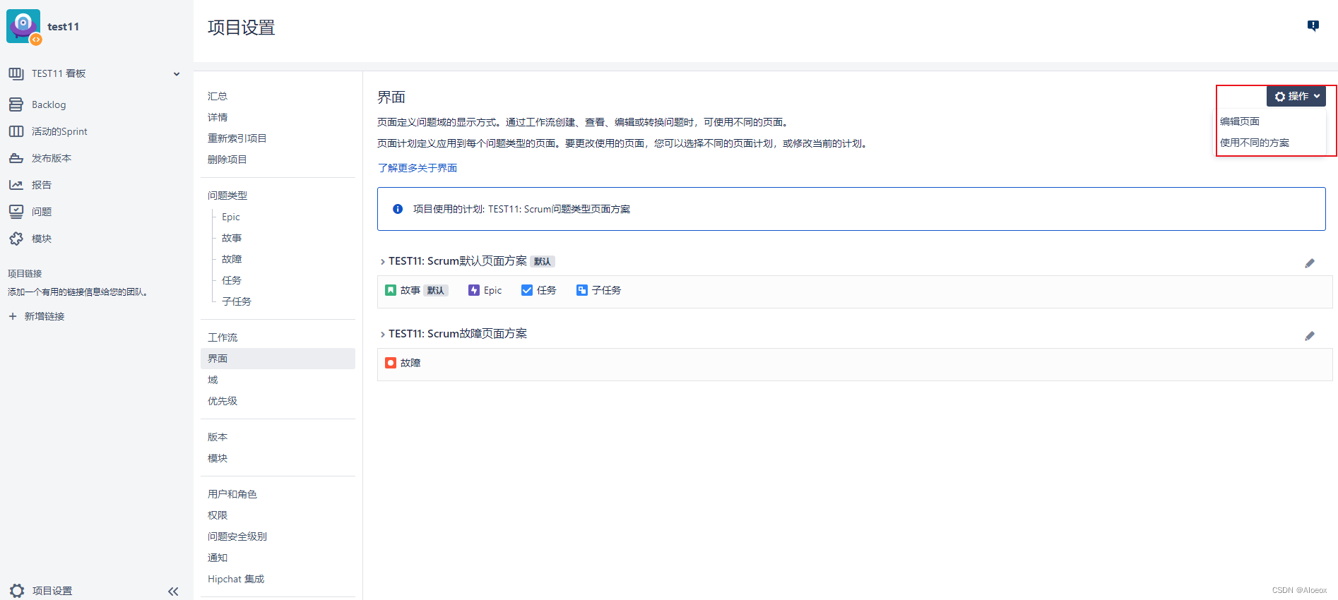 5)点击问题类型,再点击操作,可以选择编辑问题类型和使用不同的方案。