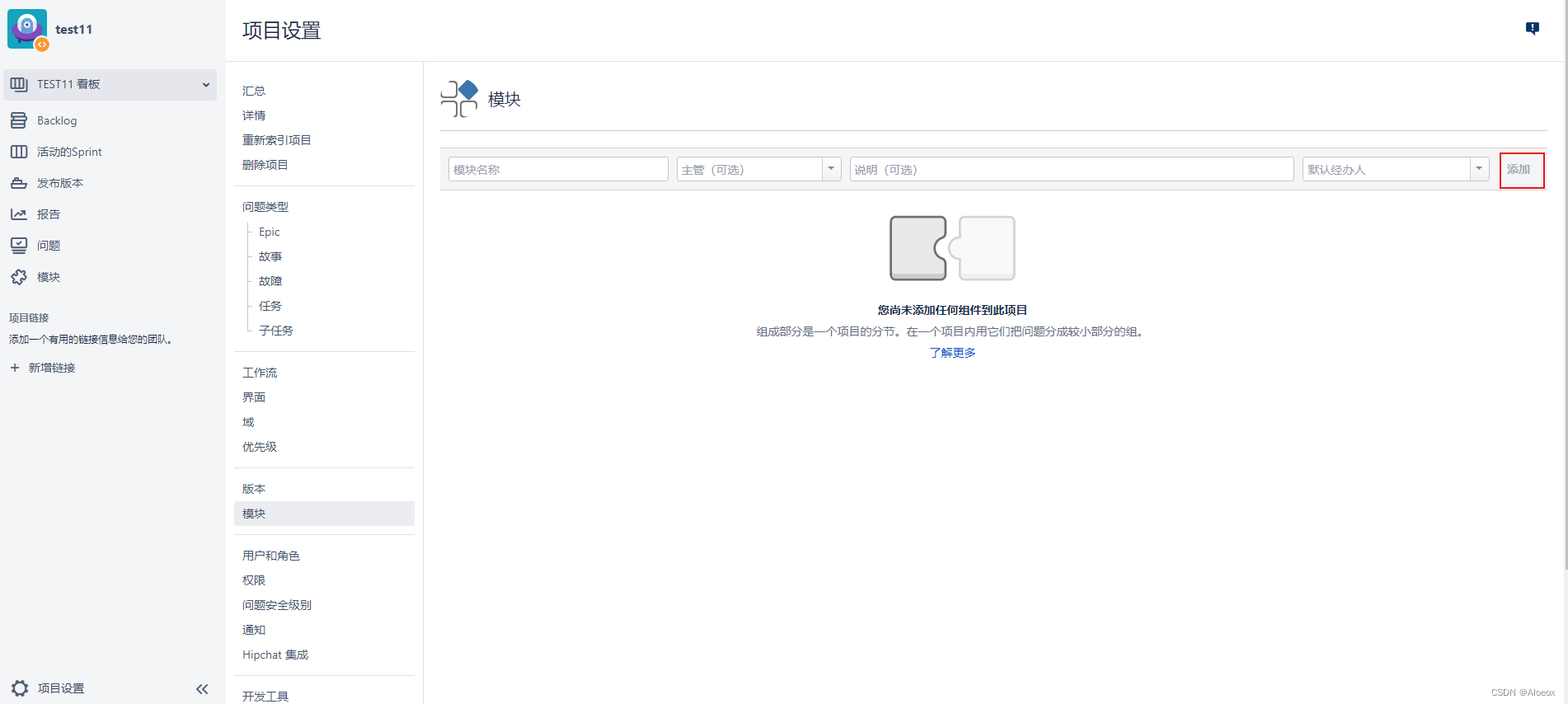 17)模块设置:根据项目实际需要可以按照功能划分,也可以按照人员划分,也可以按照前后端划分。可以填写相应的主管,也可以填写默认经办人。默认经办人则为bug处理的默认人员。