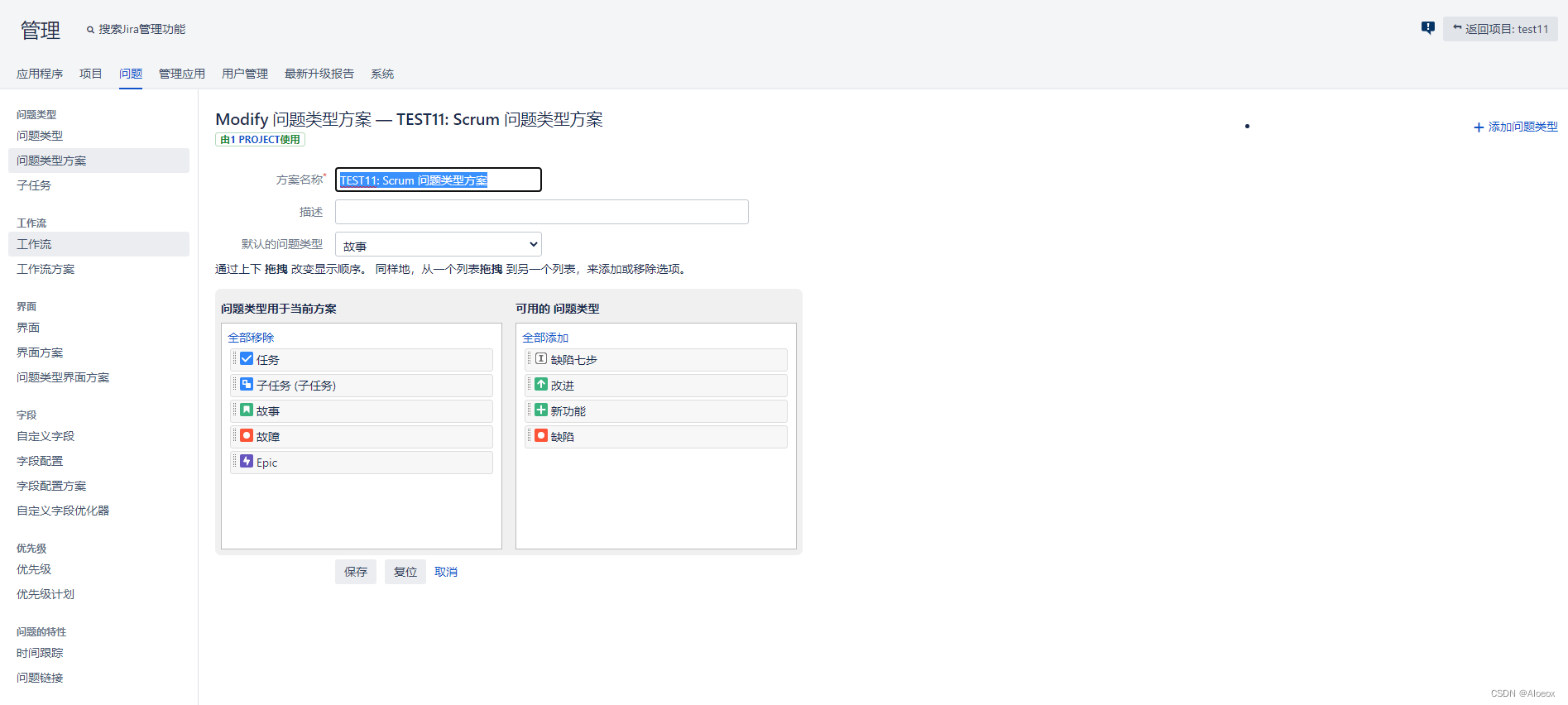 Epic、改进、故事、缺陷、任务、新功能、子任务单个问题类型操作都相似。