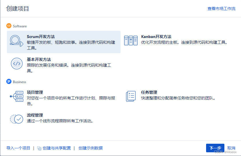 2)进入到创建项目类型选择页,根据相对应的项目需求,选择相对应的项目类型。