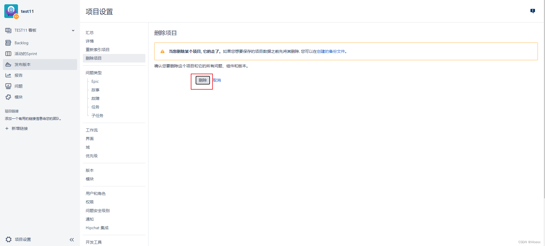 4)点击删除项目,刚刚创建的项目会被删除,请谨慎操作。