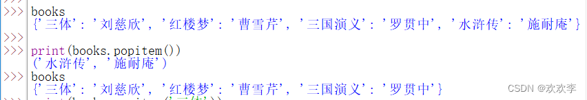 (2)、popitem():返回值是一个元组(key,values)默认从后往前删除