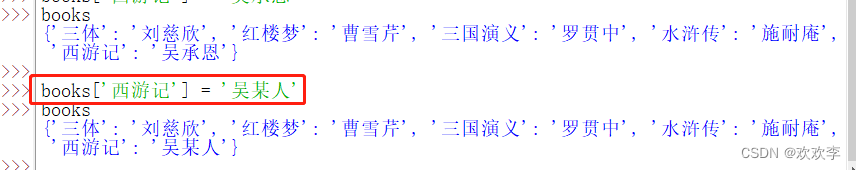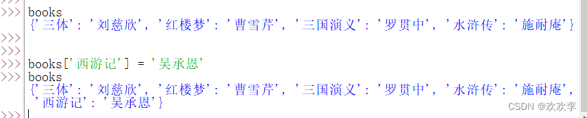 关键看key,如果字典中不存在键,则是添加;如果字典中存在键,则是修改