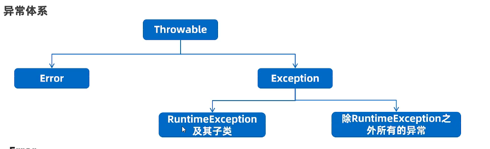 Exception:java.lang包下,称为异常类,表示程序本身可以处理的问题