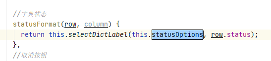 查询修改删除时进行回调 获取当前行的字典状态 字典翻译