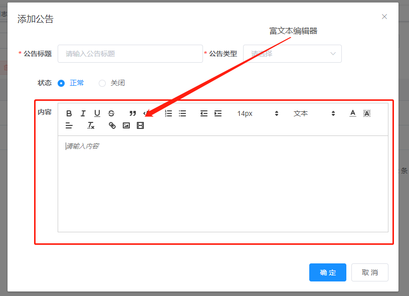 <el-form-item label="内容"><editor v-model="form.noticeContent" :min-height="192"/></el-form-item>