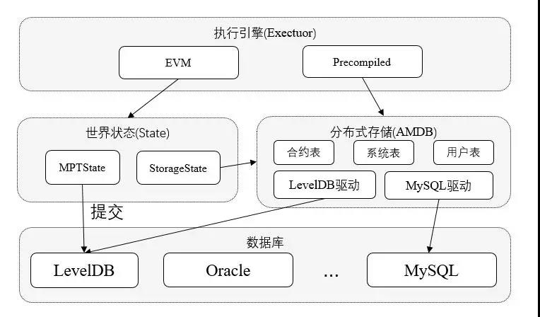 分布式存储(Advanced Mass Database,AMDB):重新抽象了区块链的底层存储模型,实现了类SQL的抽象存储接口,支持多种后端数据库,包括KV数据库和关系型数据库。