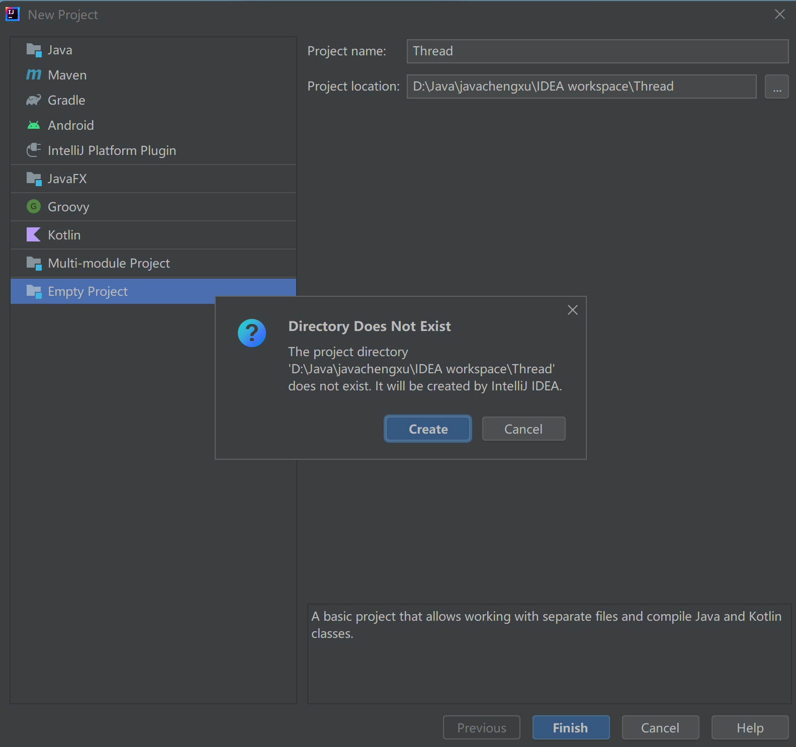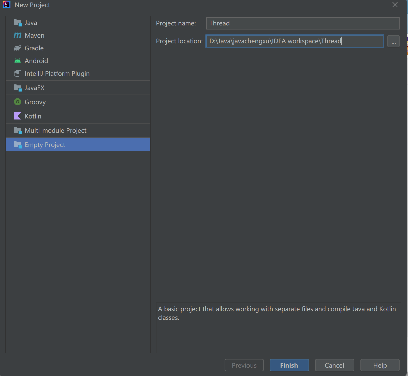 (2) 点击 New project 进入如下界面,选择最后一个:Empty Project。并在右边设置项目路径以及名