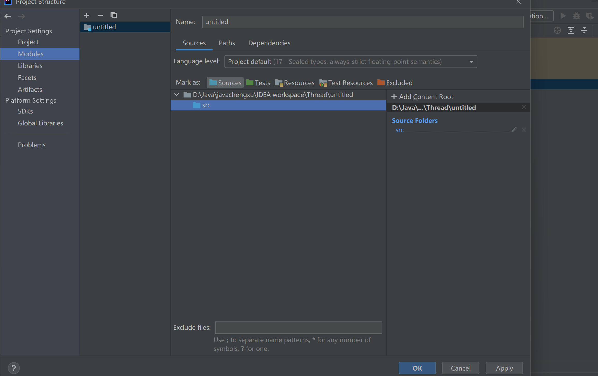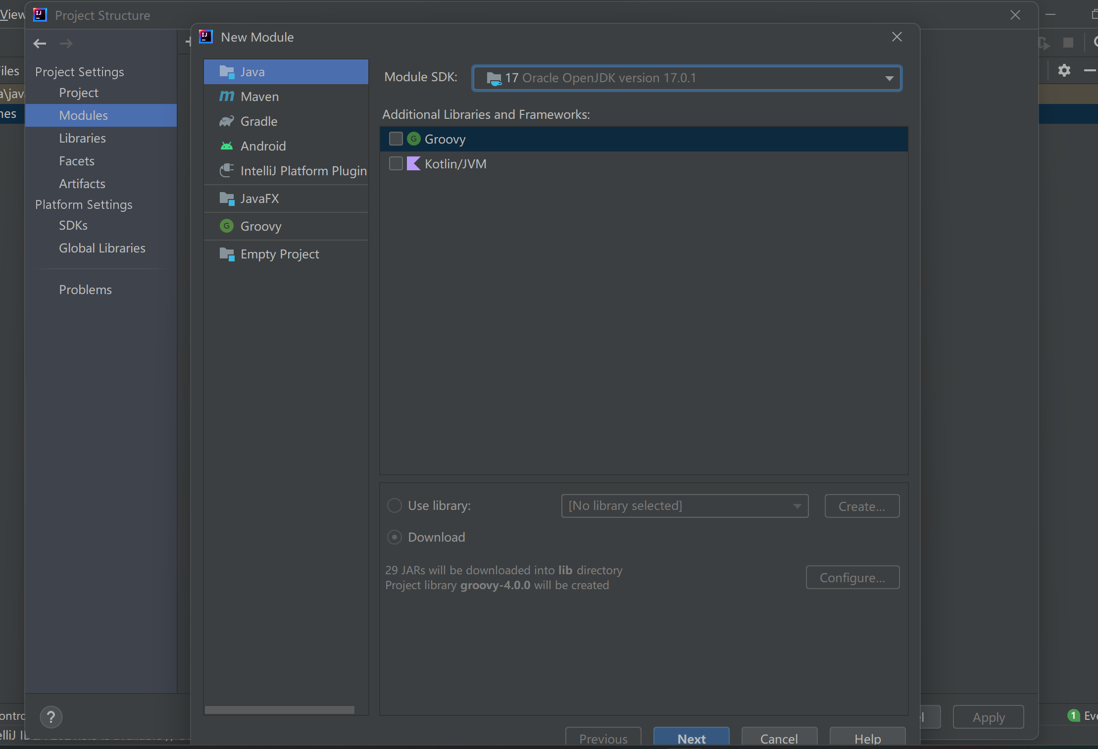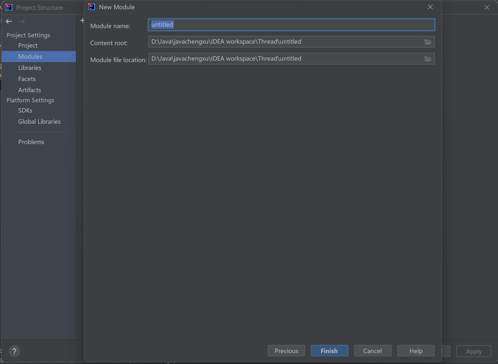 Next,进入如下:新建模块:MOdules路径,名称设置.
