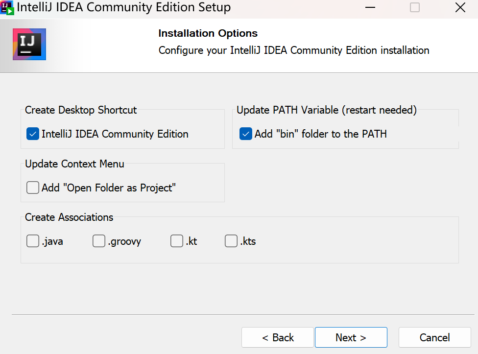 - Update PATH variable ( needed):是否将 IDEA 启动目录添加到环境变量中,即可以从命令行中启动 IDEA,根据需要勾选。