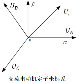 从上图可知,我们可以通过互差120度,大小随着时间按正弦规律变化的3个分矢量来合成一个大小不变旋转的总矢量。于是问题又变成了:如何得到大小随着时间按正弦规律变化的3个分矢量呢?我们先回到电机上,其实这3个分矢量就对应了电机的3个绕组,3个绕组就是互差120度的,只要再控制绕组上的电压大小按照正弦规律变化,是不是就可以得到大小不变旋转的总矢量呢?看下面电机定子的坐标系图: