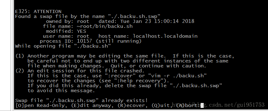Linux:vim编辑时遇到E325: ATTENTION Found 错误代码的解决办法