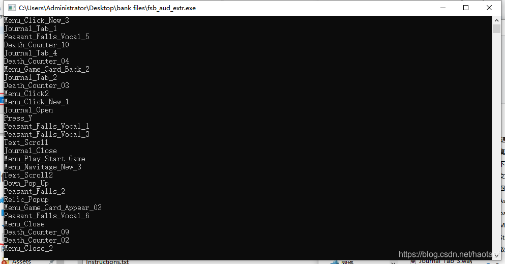 5.将导出的文件拖到fsb_aud_extr.exe上就会显示提取窗口,如图
