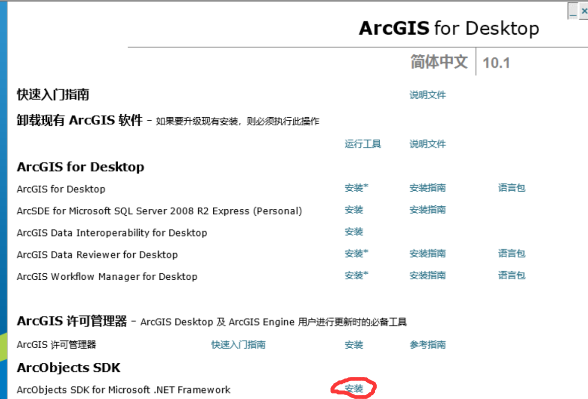 首先在License Server Administrator中停止许可证,再在ArcGIS10.1安装包中找到”ESRI.exe“并打开,选择安装“AO”(前提是已经安装好对应版本的 ArcGIS Desktop、 VS2010、许可证)