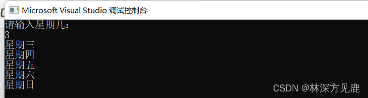 当然,大家也能看出来,这个程序是不能够正确表达出我们想要的结果的,我们只想输出星期三,但是却输出了很多不想要的结果,这个时候,我们就不得不引出switch语句中的break。