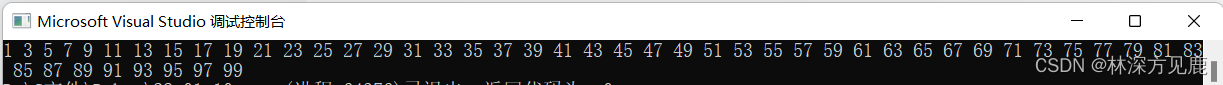 {int i = 0;while (i <= 100){if (i % 2 == 1)printf("%d ", i);i++;}return 0;