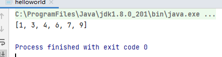 import java.util.Arrays;public class helloworld {public static void main(String[] args) {int[] arr={1,4,3,6,7,9};Arrays.sort(arr);System.out.println(Arrays.toString(arr));}