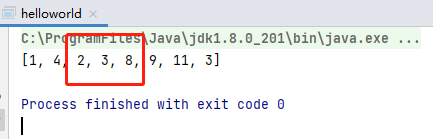 import java.util.Comparator;public class helloworld {public static void main(String[] args) {Integer[] arr2={1,4,3,8,2,9,11,3};Arrays.sort(arr2,2,5);System.out.println(Arrays.toString(arr2));}