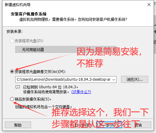 3.如果有已有的iso文件,可以选择“安装程序光盘印象文件”,但是这是简易安装,可能后期会出现bug,不推荐。