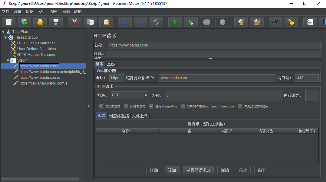 4. 在JMeter中打开并运行Badboy录制的.jmx脚本