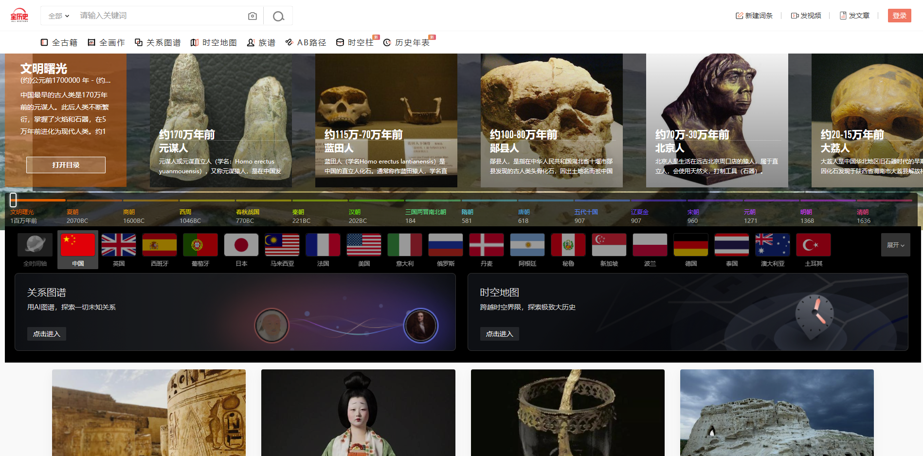 一个以AI知识图谱为核心引擎,通过高度时空化、关联化数据的方式构造及展现数字人文内容,里面包含的内容有全古籍、全画作、关系图谱、时空地图、族谱、历史年表等内容可以查看。