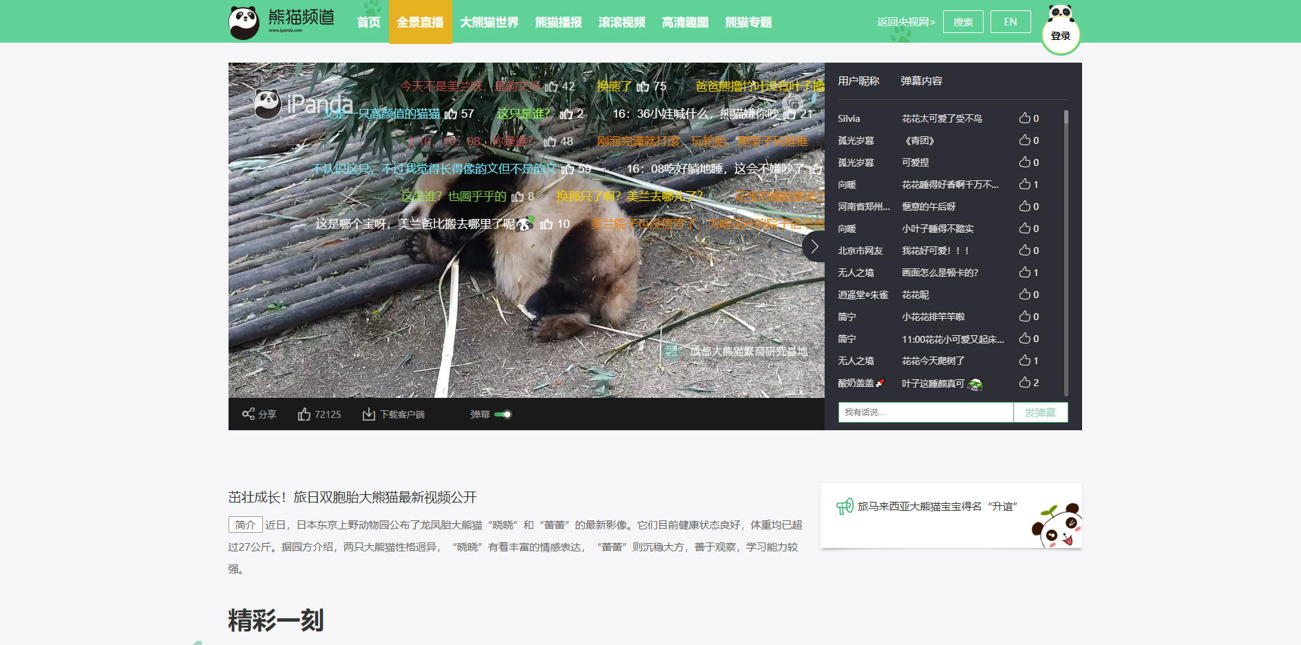 一个央视频推出的熊猫为主的网站,里面有熊猫全景直播、熊猫博物馆、熊猫播报、熊猫短视频、高清趣图等内容,最近大熊猫话题比较过,喜爱它们的话可以在线云吸熊猫。