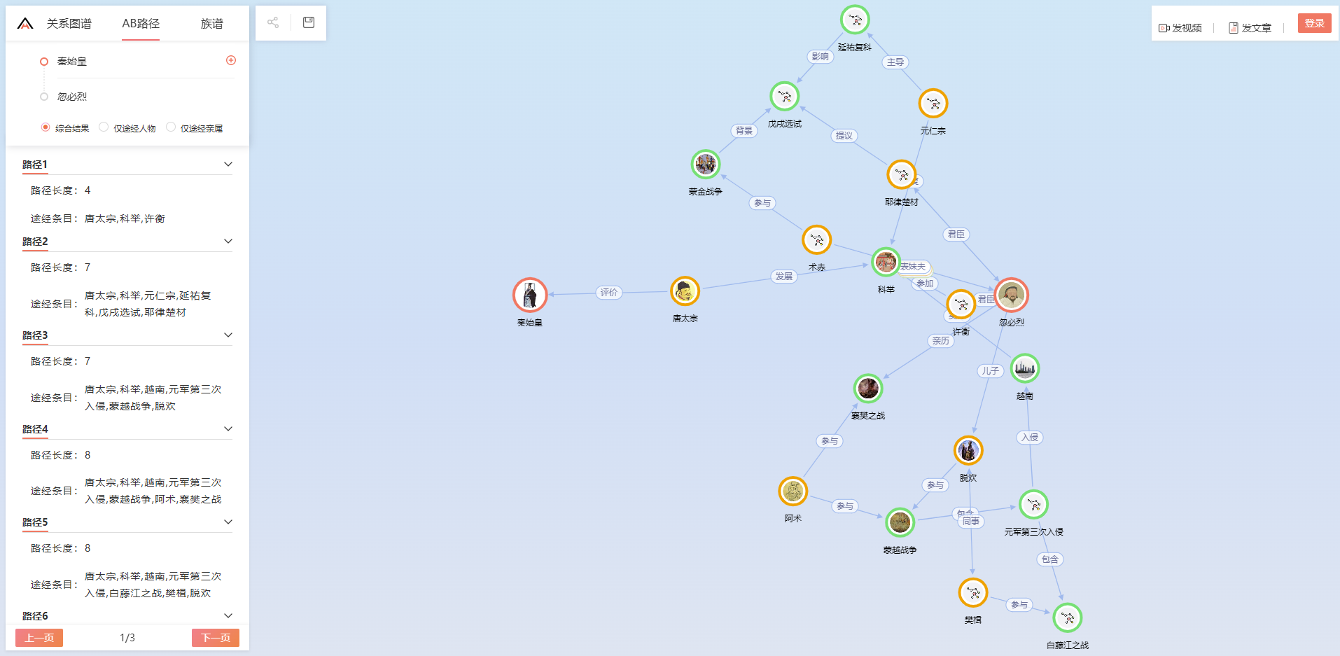 里面不仅包含了国内的历史,还包含了国外的历史,它里面的AB路径和族谱功能还挺有意思的,可以查看不同人物之间的关联。
