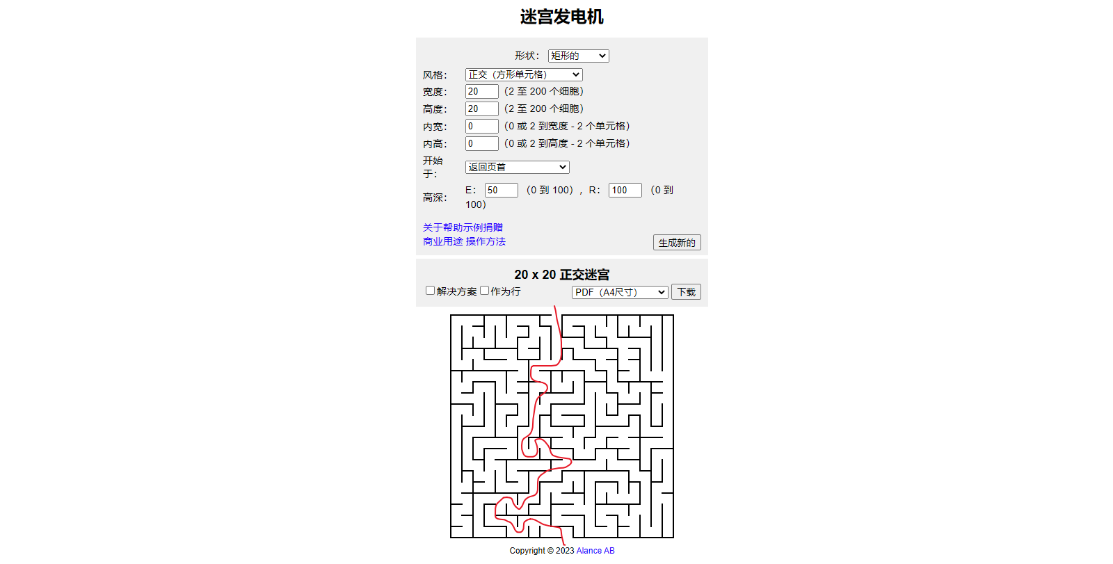 一个在线迷宫生成器,打开自后选择一下形状、风格,设置一下高度、宽度、高深等参数,就可以快速生成一个迷宫了,可以直接打印出来玩,不方便打印的话,可以直接截图,用标注工具标注路线。