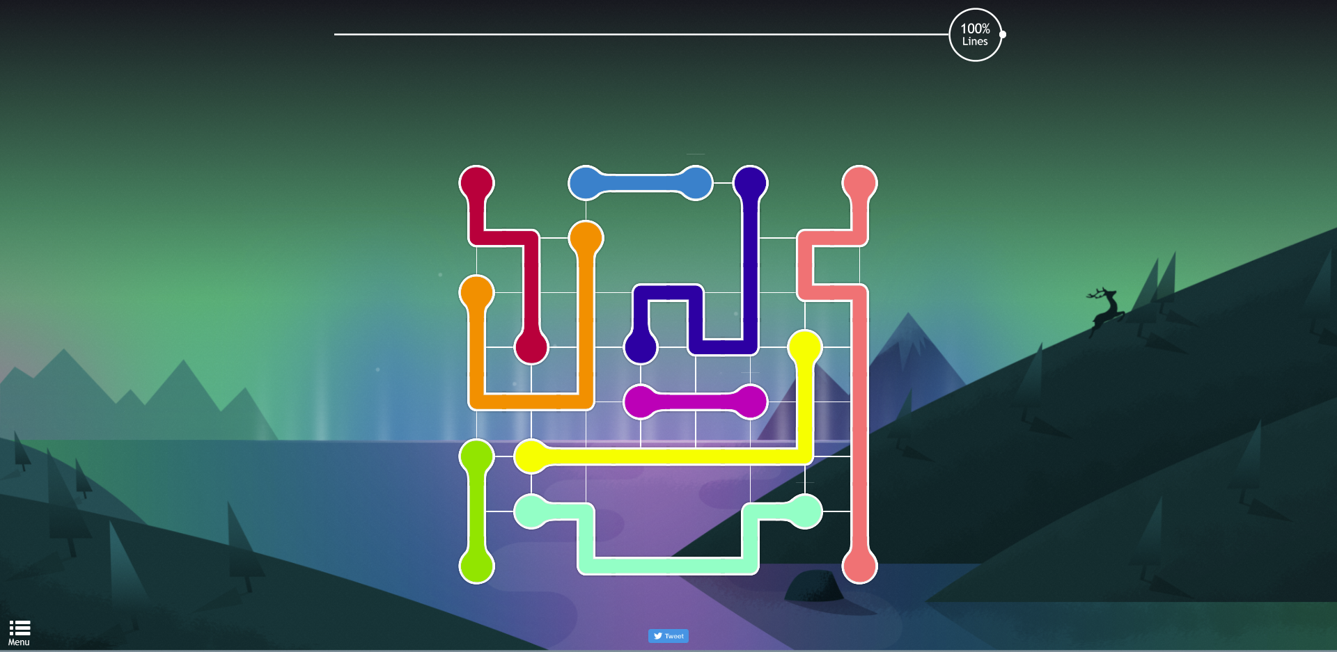 一个在线益智类游戏,需要将相同颜色的原点连接在一起,并且路线不能重叠,还要路过所有的方格连接点,越到后面的关卡就越难。