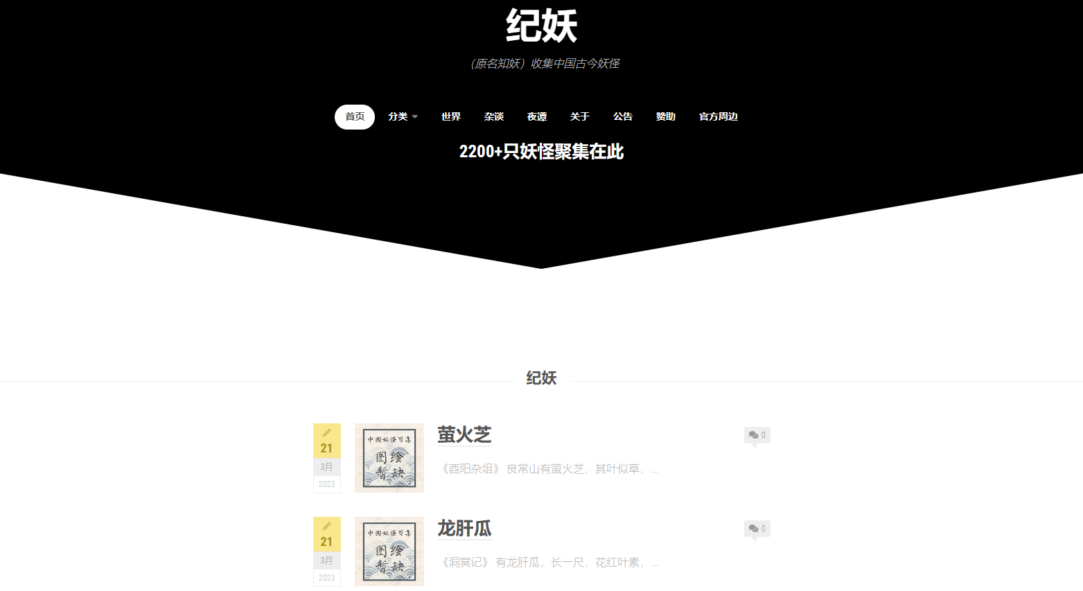 一个收集中国古今妖怪的网站,很多小说里、电视剧中出现的妖怪都能在这找到,国内国外的都有,里面有介绍和文字记载来源,部分妖怪还有相关的图片,对这种内容比较感兴趣的话,可以看看这个网站。